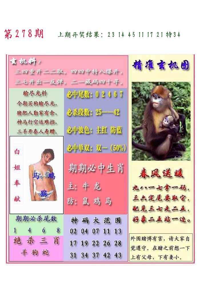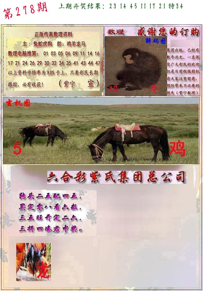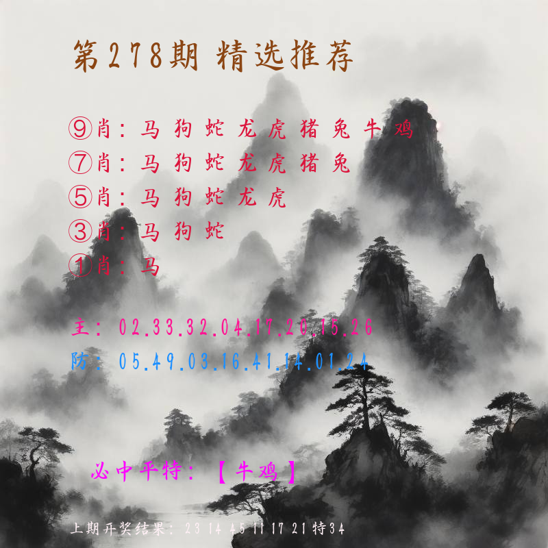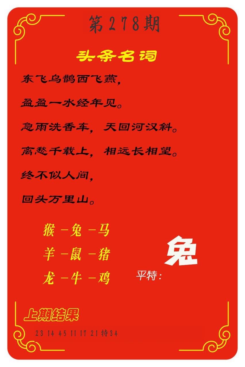 2025278期 | 兔鸡狗虎猴马牛 | ????? |