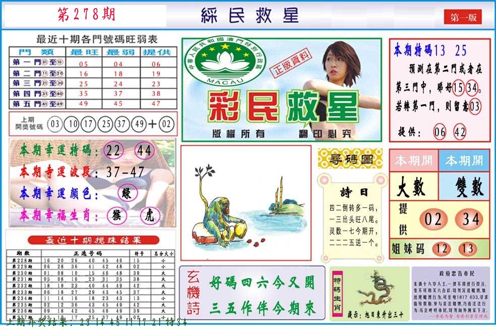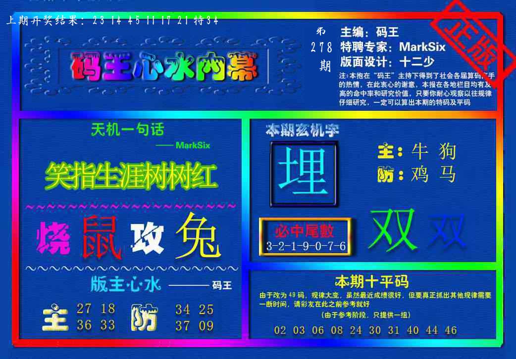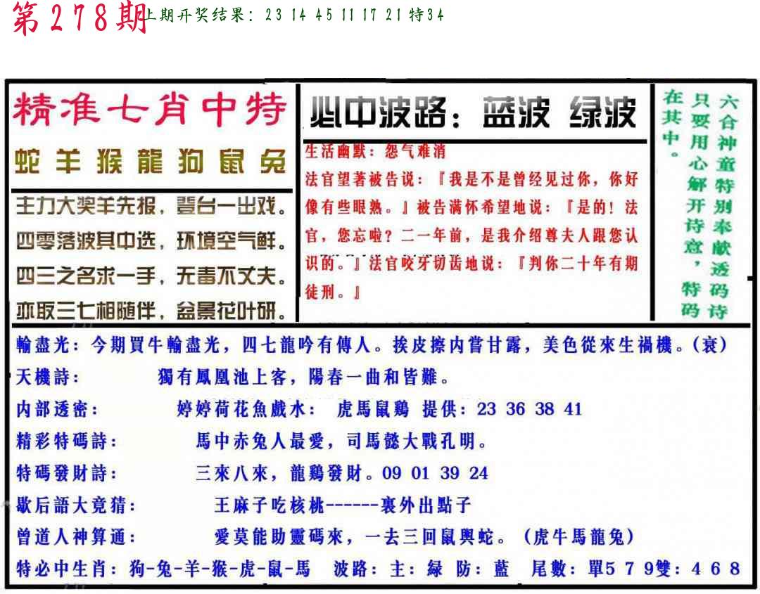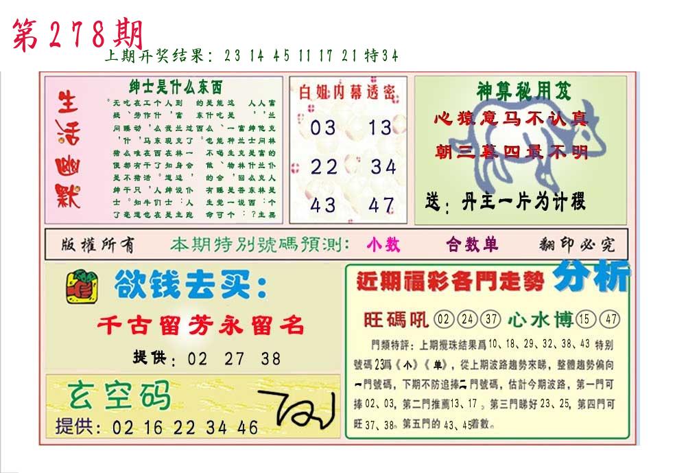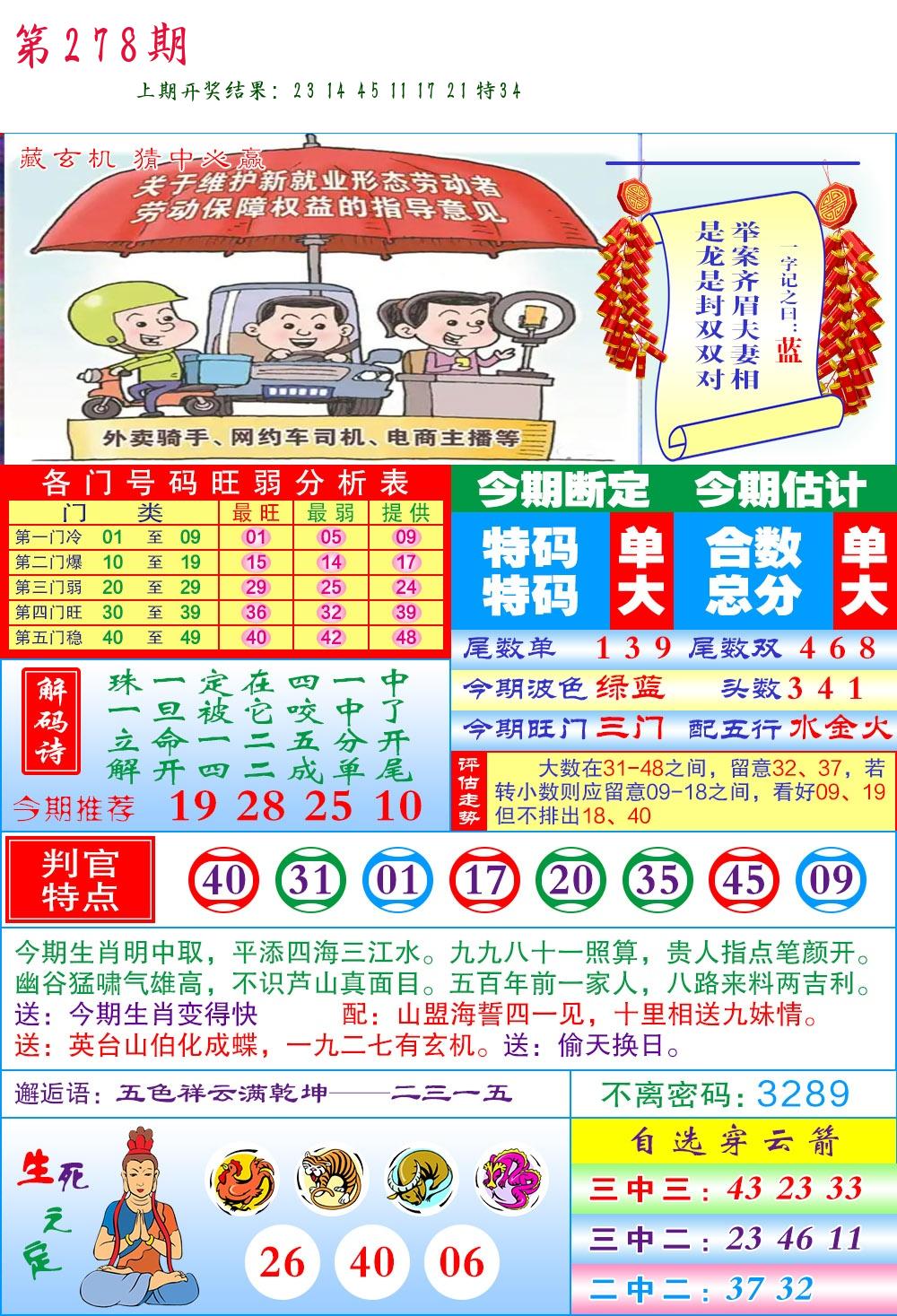 2025278期 | 兔鸡狗虎猴马牛 | ????? |