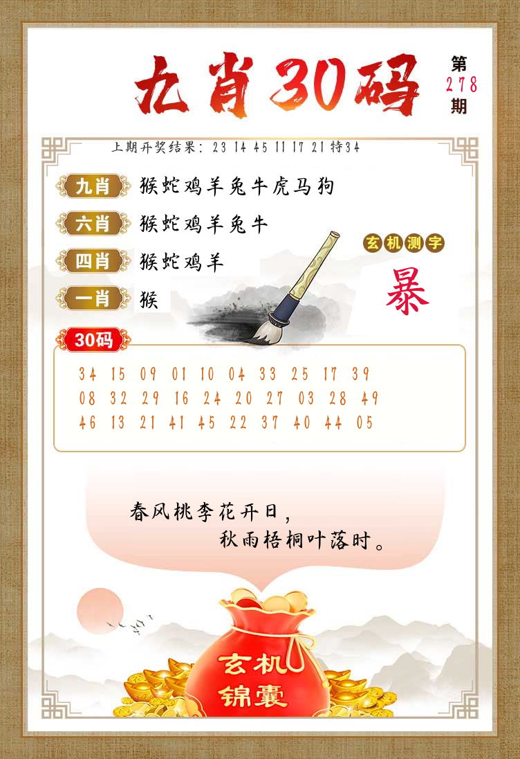 2025277期 | 虎龙猪蛇牛羊猴 | 34猴 |