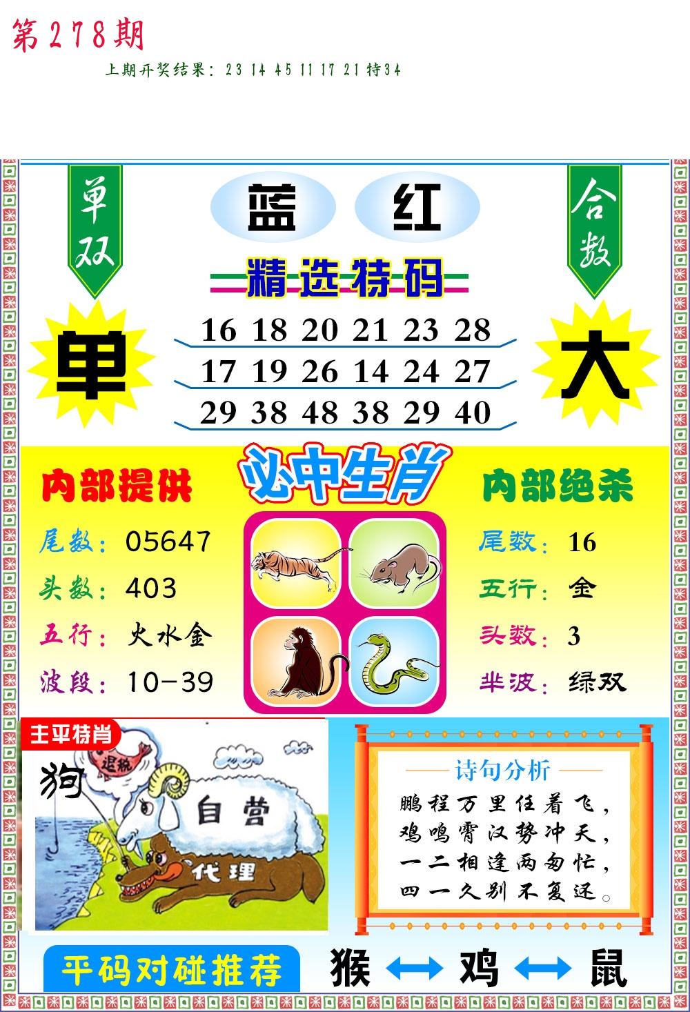 2025276期 | 狗猴鸡羊马鼠龙 | 21鸡 |